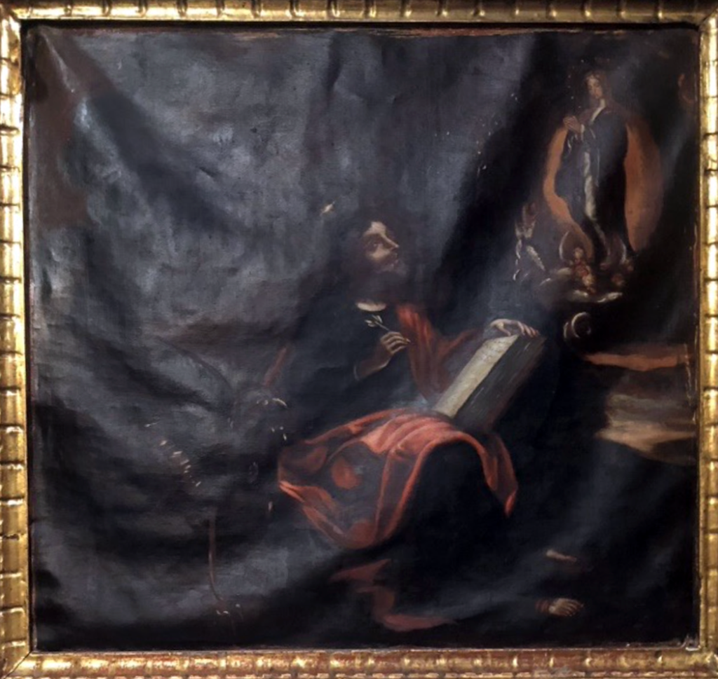 La obras que representan la Asunción de la Virgen y de los Evangelistas se encuentran mal tensionados y sujetos al bastidor, hecho por el cual la pintura puede estar sufriendo en lo que a cohesiones entre sustratos se refiere.